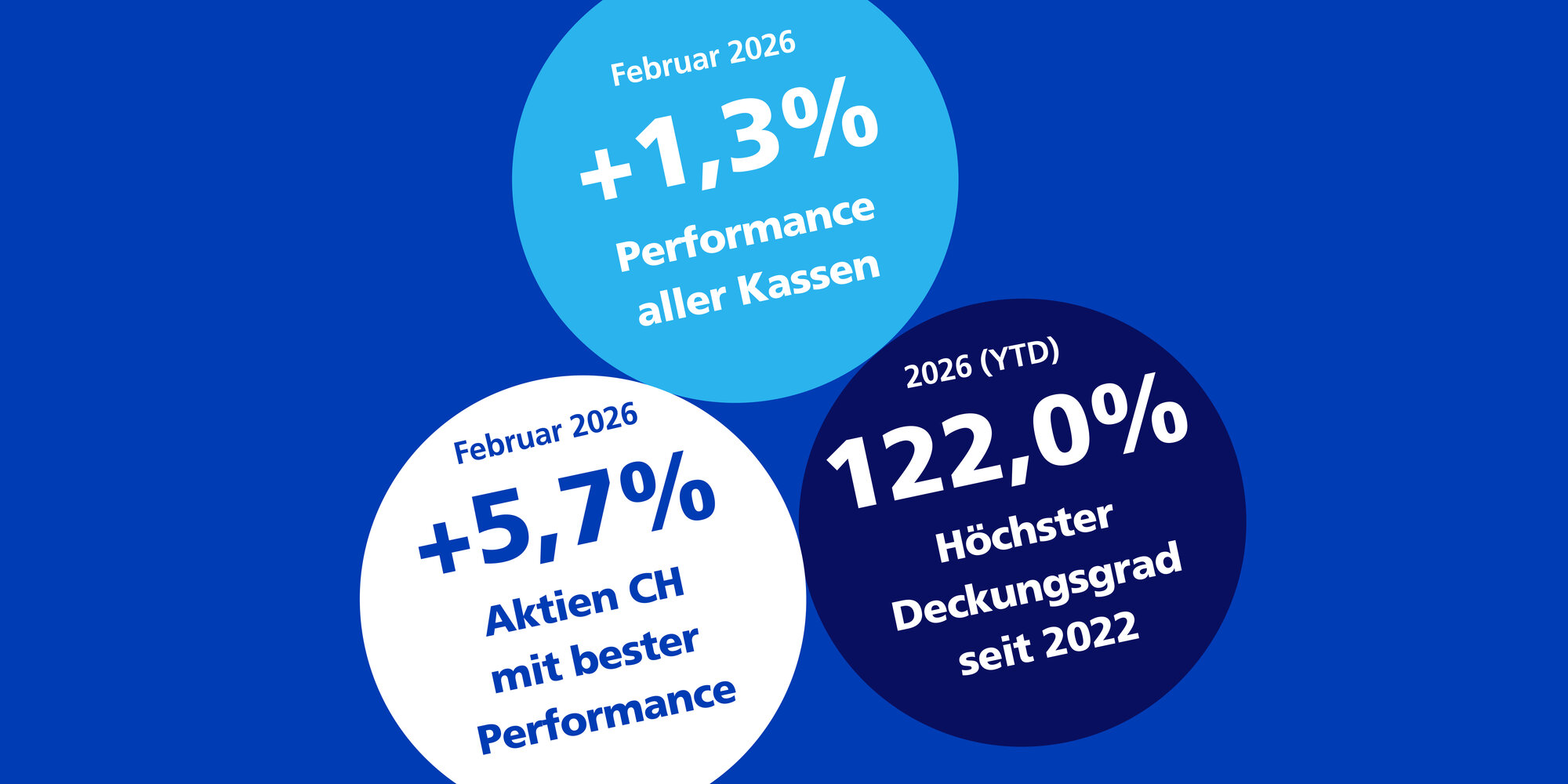 - Deckungsgrad: Nachdem der kapitalgewichtete Deckungsgrad der privatrechtlichen Kassen Ende 2025 auf 120,6 Prozent gestiegen war, erreichte er im Februar gemäss unserer Hochrechnung 122 Prozent. Somit wurde die Bestmarke vom Januar nochmals übertroffen. Die öffentlich-rechtlichen Kassen mit Vollkapitalisierung erzielten einen Deckungsgrad von 116,8 Prozent, jene mit einer Teilkapitalisierung 93,5 Prozent.
