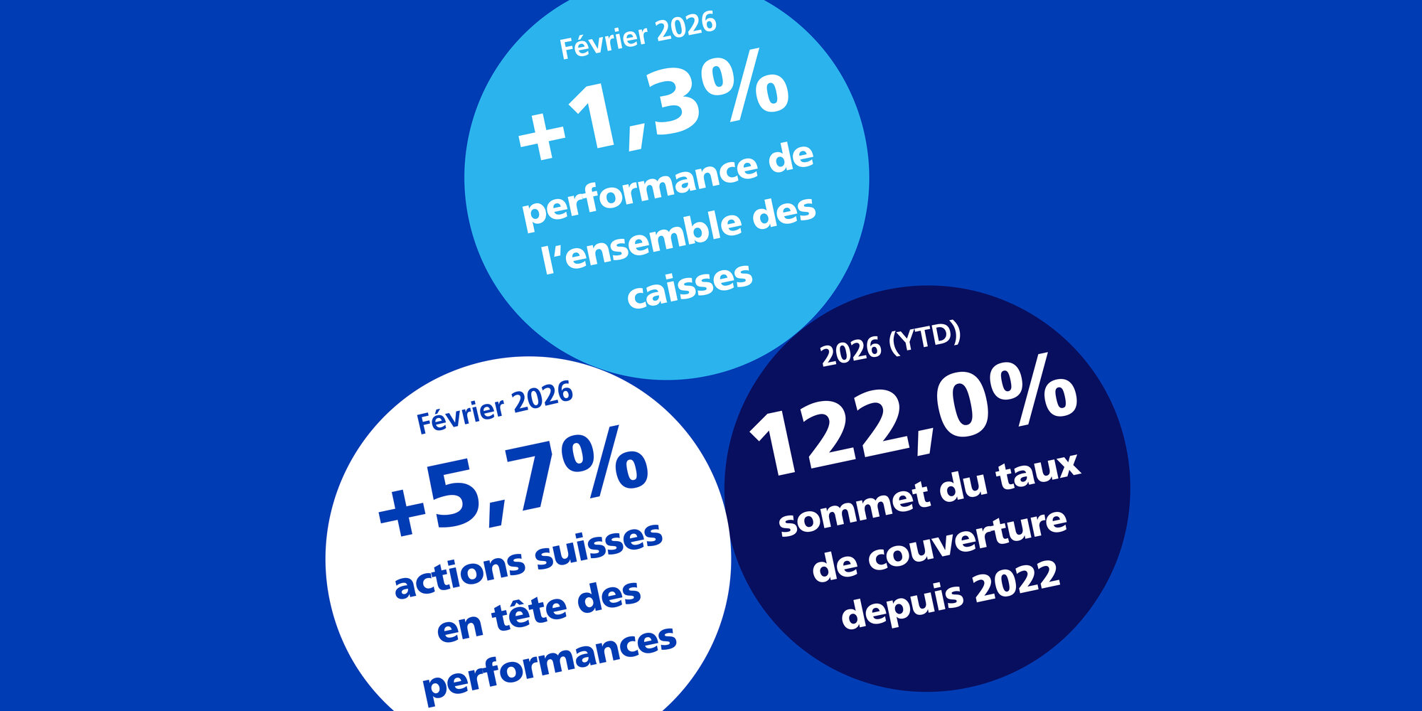 - Taux de couverture Après avoir atteint 120,6% fin 2025, le taux de couverture pondéré par les actifs des caisses de droit privé s’est établi à 122,0% en février selon nos estimations, dépassant ainsi le niveau record du mois précédent. Les caisses publiques affichent un taux de couverture de 116,8% pour les institutions entièrement capitalisées et de 93,5% pour les institutions partiellement capitalisées.